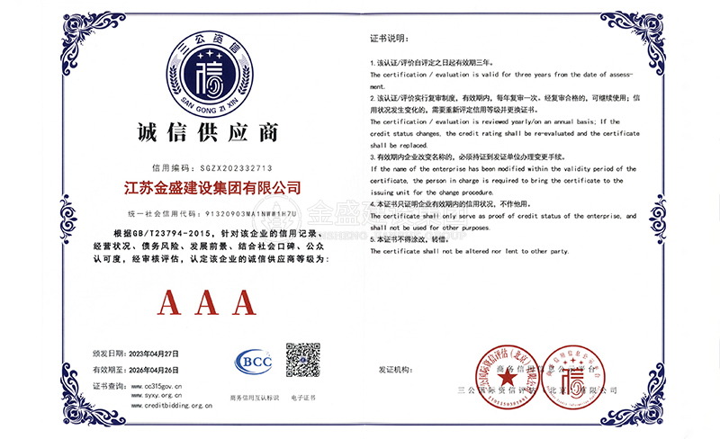 • 2007年江蘇省質(zhì)量信得過(guò)安全穩(wěn)定施工企業(yè)